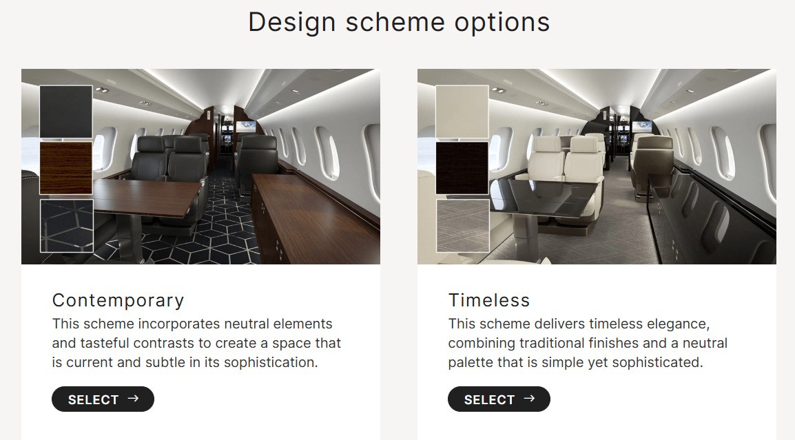 Pesawat ini dapat dikonfigurasi sesuai selera pembeli, sesuatu yang telah dilakukan Cristiano Ronaldo. Kustomisasi ini memungkinkan, seperti yang dapat kita lihat di situs web Bombardier, untuk menentukan tata letak beberapa kursi dan ruang pertemuan, memilih apakah kita menginginkan dekorasi interior kontemporer atau klasik, yang lebih abadi, dan bahkan menentukan jenis dekorasi yang kita inginkan di bagian luar, seperti bentuk dan warna garis-garis pada pesawat.