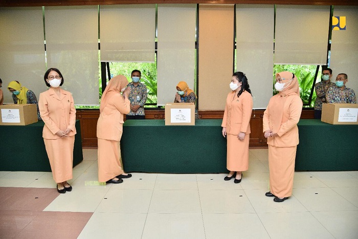 Di tengah Pandemi COVID-19 yang belum selesai Dharma Wanita Persatuan (DWP) Kementerian Pekerjaan Umum dan Perumahan Rakyat (PUPR) menunjukkan kepeduliannya melalui kegiatan bakti sosial berupa pemberian masker kepada para pramubakti di lingkungan Kementerian PUPR. Kegiatan ini sekaligus memperingati Hari Ulang Tahun (HUT) DWP ke-21 yang dilaksanakan Rabu (16/12/2020).