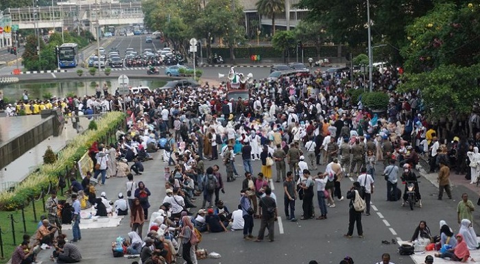 Proses persidangan gugatan sengketa Pilpres 2019 di Mahkamah Konstitusi (MK) ditutup dan akan dilanjutkan pada Selasa, 18 Juni 2019. Namun massa aksi yang mengaku mengawal prosesnya itu masih berorasi di kawasan Patung Kuda.