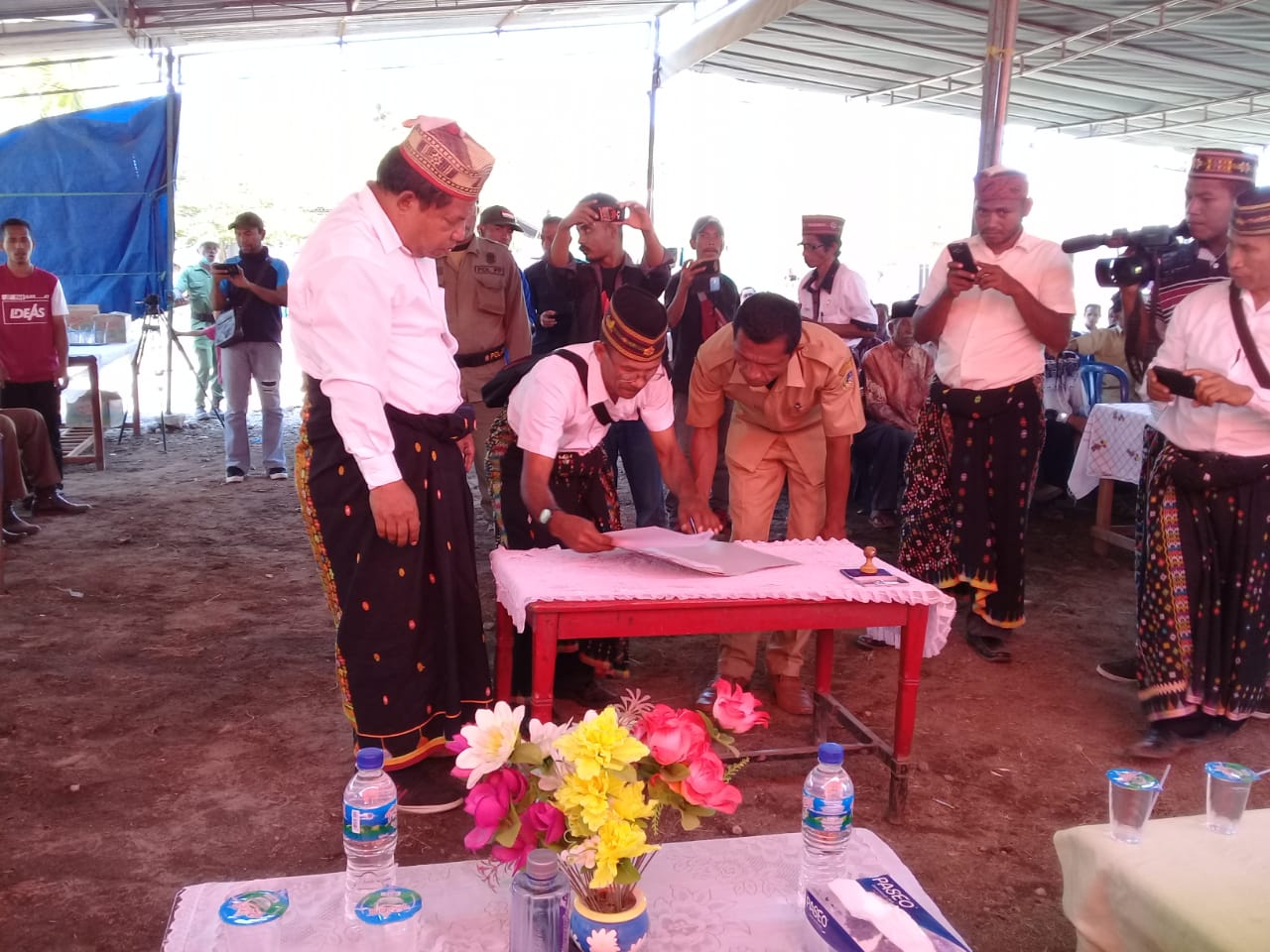 Bupati dan wakil Bupati Matim langsung menandatangi surat berita acara penyerahan tanah dari Pemerintah Desa Bamo ke pihak Pemerintah