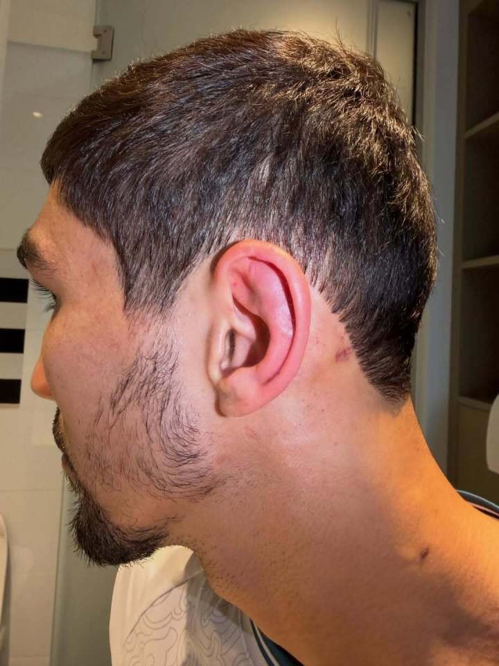 Khalokov kemudian membagikan gambar telinganya, yang sangat merah, meskipun tidak ada tanda-tanda kulitnya robek.