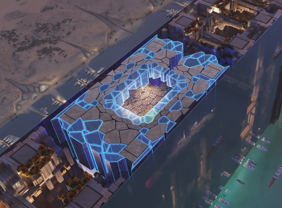 Stadion Neom akan dibangun di atap The Line, kota pintar sepanjang 110 mil yang diperkirakan menghabiskan biaya $1 triliun. Dengan jumlah penduduk sembilan juta jiwa, kota ini dirancang untuk memiliki eksterior cermin tanpa mobil atau jalan.
