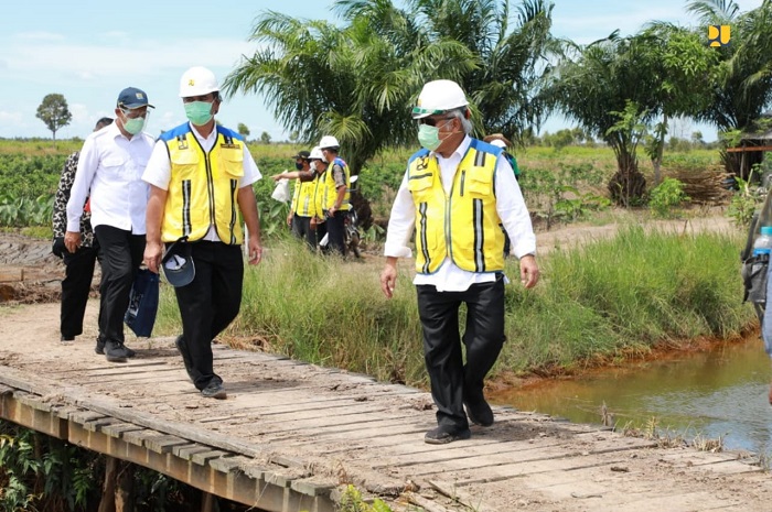 Memanfaatkan libur panjang Maulid Nabi Muhammad, Menteri Pekerjaan Umum dan Perumahan Rakyat (PUPR) Basuki Hadimuljono meninjau lokasi pengembangan lumbung pangan baru di luar Pulau Jawa atau food estate di Kabupaten Kapuas, Provinsi Kalimantan Tengah (Kalteng), Jumat (30/10/2020). Pengembangan kawasan ini di antaranya dilakukan dengan rehabilitasi dan peningkatan jaringan irigasi yang dilakukan secara bertahap.