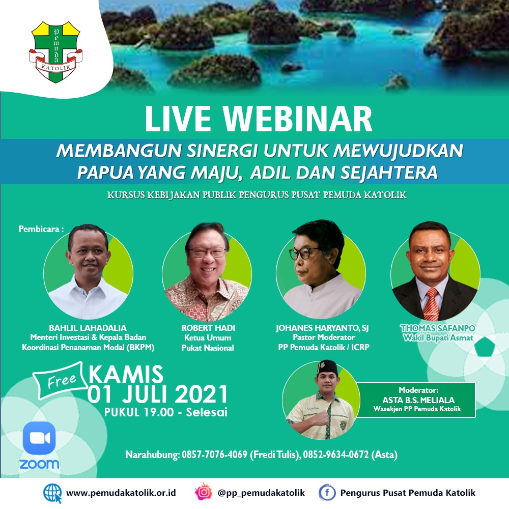 "Membangun Sinergi Untuk Mewujudkan Papua Yang Maju, adil dan Sejahtera, yang diselenggarakan Kebijakan Publik Pengurus Pusat Pemuda Katolik, Kamis, 1 Juli 2021.