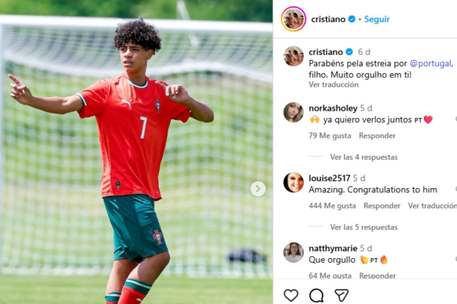 Putra bintang Portugal itu melakoni debutnya untuk tim nasional dan sang ayah pun dengan cepat mengungkapkan rasa bangganya di depan publik.